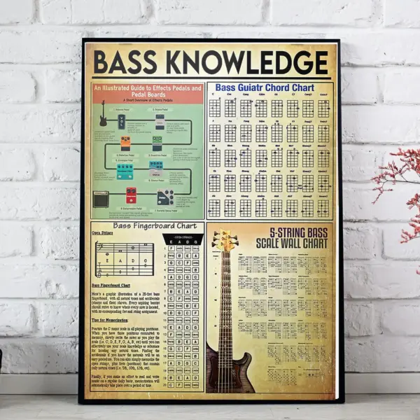 Bass Guitar Knowledge Poster Framed Matte Canvas