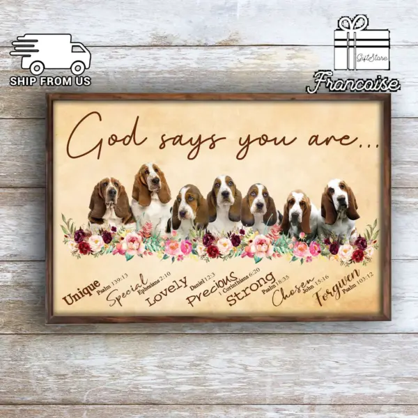Basset Hound Dog Lovers God Says You Are Unique Special Lovely Poster Home Living Decor Poster