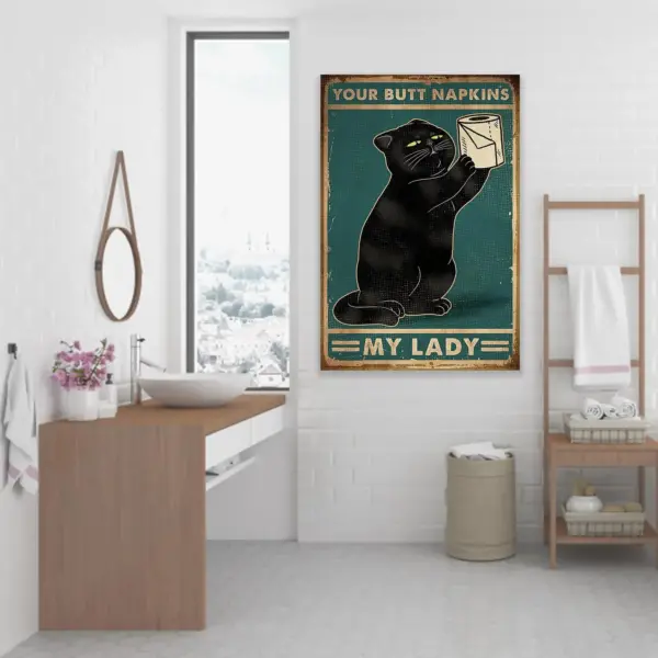 Cat Butt Napkins Bathroom Wall Art - Funny Housewarming Gift Poster