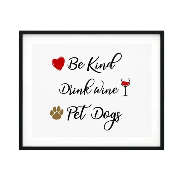 Be Kind Drink Wine Pet Dogs Unframed Print Pet Decor Wall Art