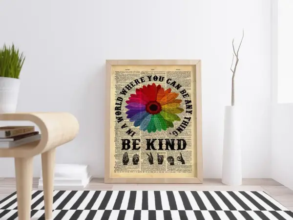 Be Kind Sign Language Dictionary In A World Where You Can Be Anything Poster No Frame You Can Be Anything Inspirational Quote Be Kind Print
