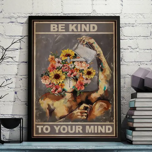 Be Kind To Your Mind Flower Head Poster Mental Health Poster Motivational Poster Be Kind Poster Love Yourself Art Print Girl Room Decor