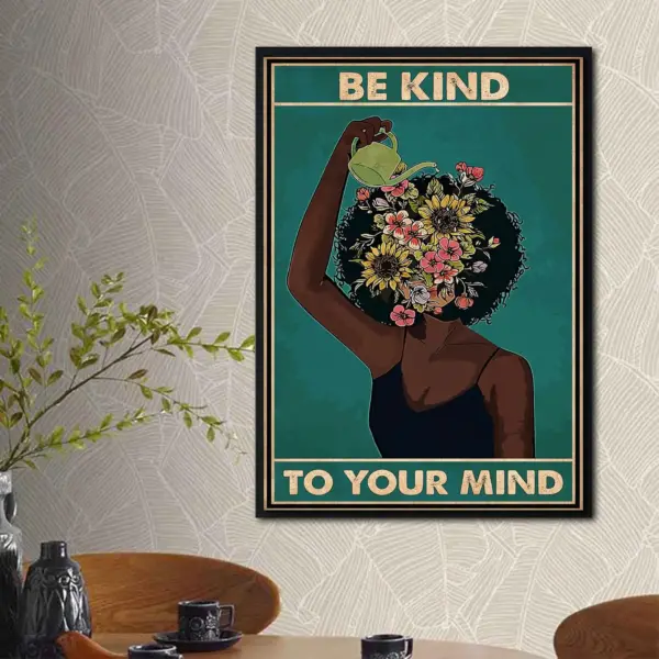 Be Kind To Your Mind Poster Afro Queen Meditation Art Mental Health Awareness Black Woman Poster African American Woman Print Yoga Art