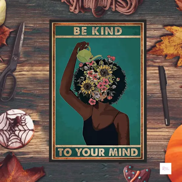 Be Kind To Your Mind Poster Black Power Poster African American Poster Black Art Flower Head Printable Wall Art Signs For Home