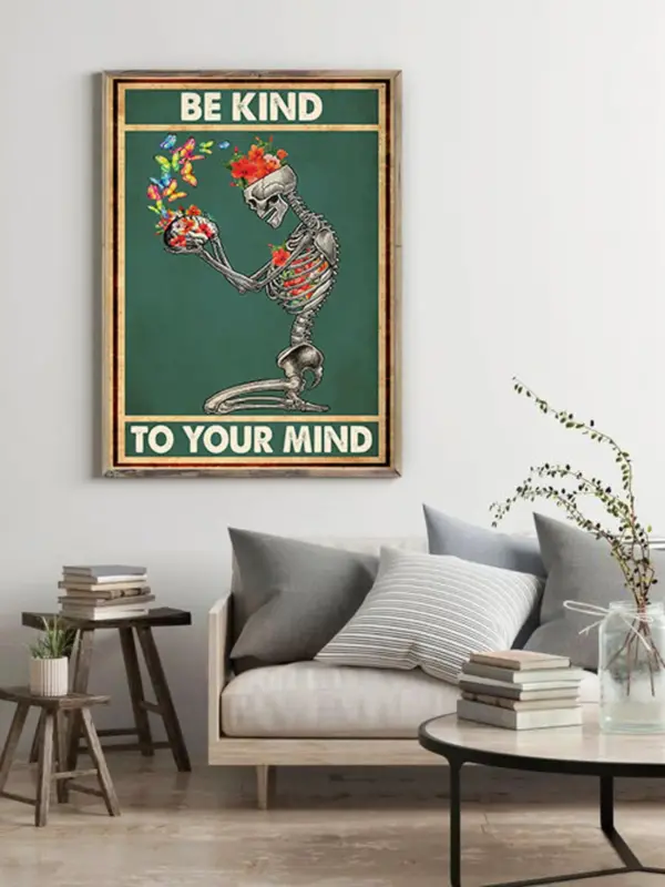 Be Kind To Your Mind Poster Skull Poster Flower Wall Art Vintage Human Anatomy Skull Flowers Skull Anatomy Signs For Home