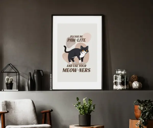 Be Pawlite Cat Poster Cat Quotes Print Wall Art Cat Lover Gift Wall Decoration Poster Instant Funny Cat