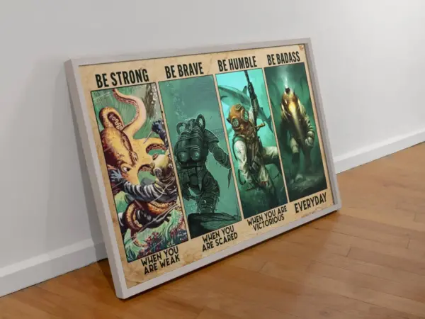 Be Strong Be Brave Be Humble Be Badass Navy Diver Motivational Poster Inspirational Art Print Canvas Art For Home Decor