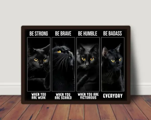Be Strong Be Brave Be Humble Be Badass Poster Black Cat Poster Cat Artwork Cat Lover Gift Home Decor Funny Cat Poster Christmas Gift