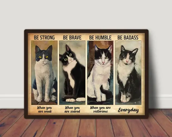 Be Strong Be Brave Be Humble Be Badass Poster Black Cat Poster Cute Cat Poster Cat Portrait Cat Wall Decor Home Decor Best Gift Ever
