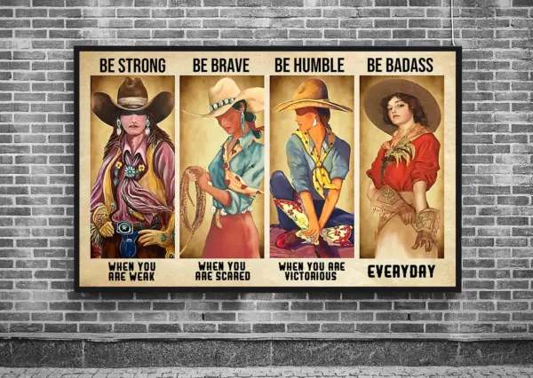 Be Strong Be Brave Be Humble Be Badass Poster Cowgirl Poster Horse Lover Gift Horse Racing Poster Christian Poster Home Decor Flower Art