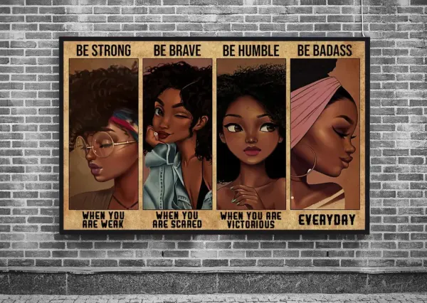 Be Strong Brave Humble Badass Poster Black Lives Matter Feminist Print Equal Right Black Girl Art Say Their Names Black Queen Poster