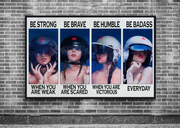 Be Strong Brave Humble Badass Poster Motorbike Poster Motorcycle Girl Lover Racing Poster Daughter Birthday Gift Home Decor Best Gift