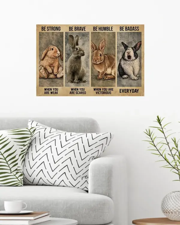 Inspirational Motivational Wall Art: Be Strong Be Brave Vintage Rabbit Poster