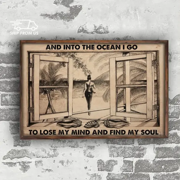 Beach And Girl Poster And Into The Ocean I Go To Lose My Mind And Find My Soul Poster Home Living Decor Poster