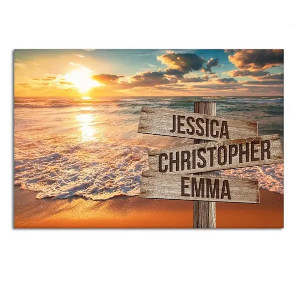 Beach Family Names Poster Personalized Beautiful Beach View Landscape Family Street Signs Customized With Names
