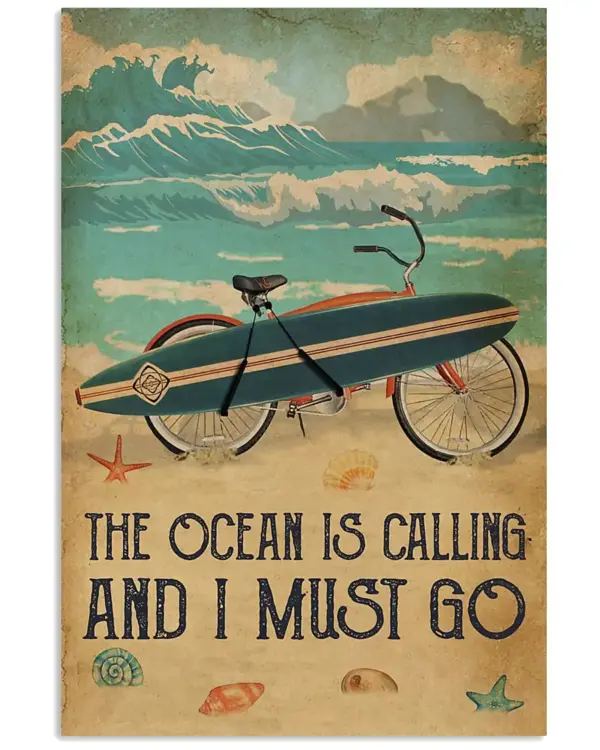 Beach Life Surfboard Bike The Ocean Is Calling Poster