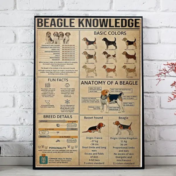 Beagle Dog Knowledge Poster Framed Matte Canvas