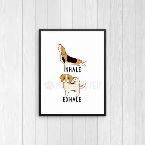 Beagle Yoga Art Print Inhale Exhale Wall Decor Yoga Wall Art Yoga Sign Yoga Lover Gifts Quote Wall Art Living Room Poster
