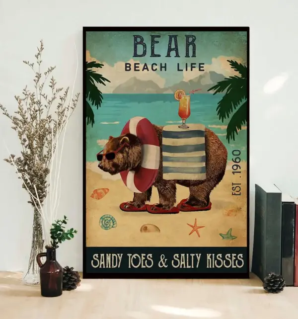 Bear Cocktail Beach Life Sandy Toes And Salty Kisses Poster