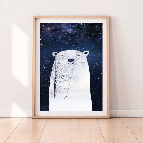 Bear Print Night Sky Stars Downloadable Prints Printable Poster Wall Art Nursery Decor Baby Kids Boys Girls Room Peekaboo Woodland Animal