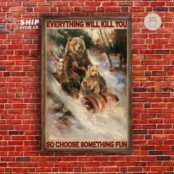 Bear Sledding Poster Everything Will Kill You So Choose Something Fun Poster Home Living Decor Poster