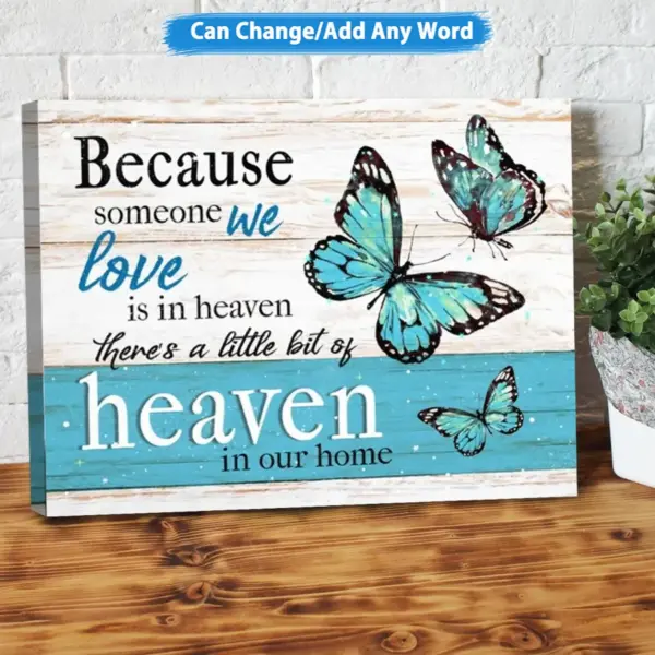 Because Someone We Love Is In Heaven Blue Butterfly Wall Art Canvas Hang Poster Print Family Home Decor Gift Housewarming Decoration New
