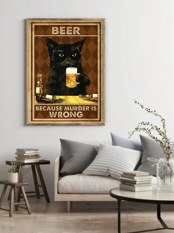 Beer Because Murder Is Wrong Poster Black Cat Poster Cat Lovers Gift Cute Cat Beer Gift Drink Wine Poster Beer Decor Home Decor