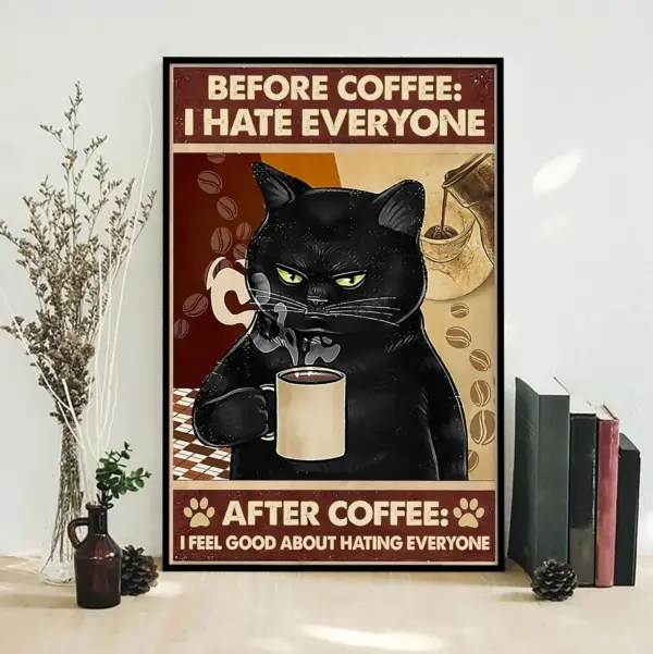 Before Coffee After Coffee Cat Poster Black Cat With Coffee Poster Vintage Cat Poster Cat Lover Gift Cat Wall Art 1401
