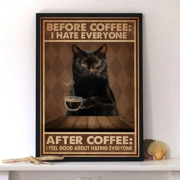 Before Coffee I Hate Everyone After Coffee I Feel Good About Hating Everyone Poster Black Cat Poster Coffee Lover Gift Gift For Cat Lover