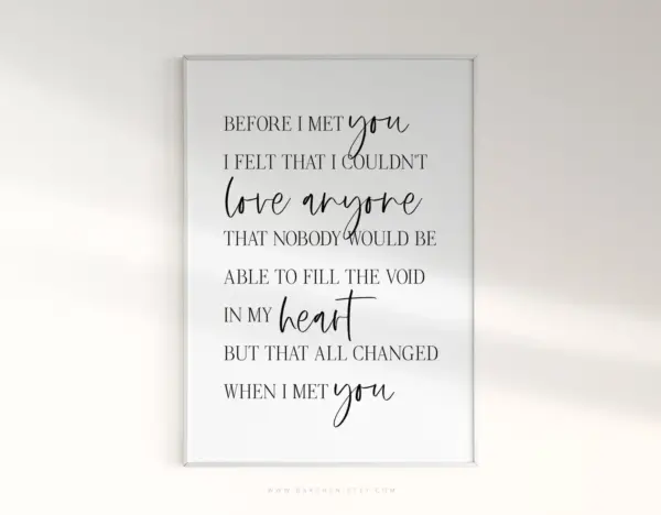 Romantic Love Quote Poster - Black & White Minimalist Wedding Anniversary Art