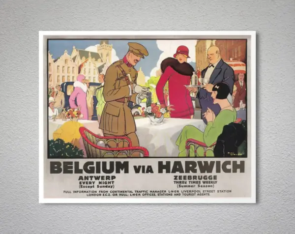 Belgium Via Harwich Vintage Travel Poster Poster Print Sticker Or Canvas Print Gift Idea Christmas Gift
