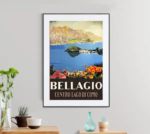 Bellagio Centro Logo Di Como Vintage Travel Poster Poster Paper Sticker Or Canvas Print Gift Idea Wall Art
