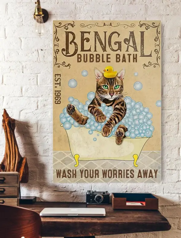 Bengal Bubble Bath Funny Cat Vertical Print Poster