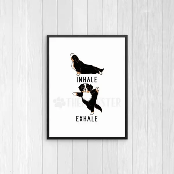 Bernese Mountain Dog Yoga Art Print Inhale Exhale Wall Decor Yoga Wall Art Yoga Sign Yoga Lover Gifts Quote Wall Art Living Room Poster