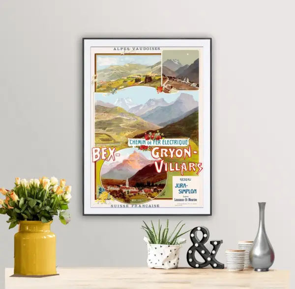 Bex Gryon Villars Alpes Suisse Vintage Travel Poster Poster Paper Sticker Or Canvas Print Gift Idea