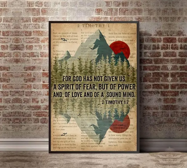 Bible God Given Us Spirit Fear Mountain Range Hiking Poster God Poster Camping Poster Hiking Lover Camping Lover Christian 2107