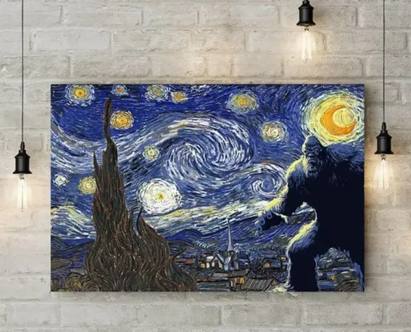 Bring the mystery of Bigfoot to your walls with this unique Van Gogh-inspired poster. Featuring a starry night scene and the legendary Sasquatch, this wall art is a captivating addition to any room.