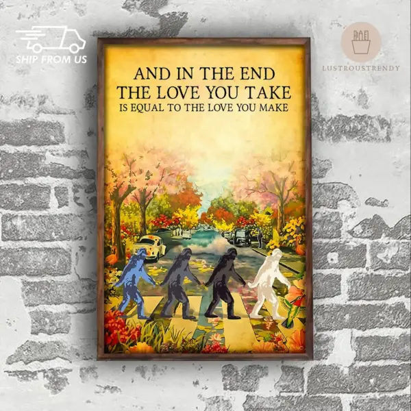 Bigfoot Sasquatch Abbey Road Poster And In The End The Love You Take Is Equal To The Love You Make Poster Beatles Lovers Home Decor Poster