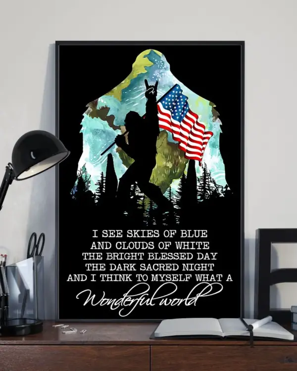 Bigfoot Sasquatch Holding American Flag Poster Myself What A Wonderful World Room Home Decor Wall Art Gifts Idea Mostsuit