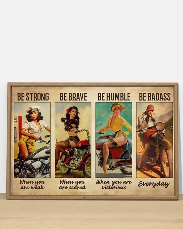 Inspirational Biker Girl Motivational Wall Art - Strength and Courage Poster