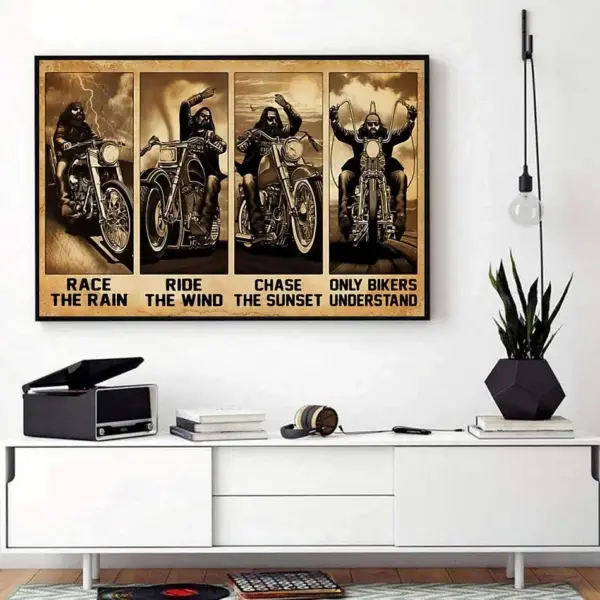 Biker Race The Rain Ride Wind Horizontal Canvas