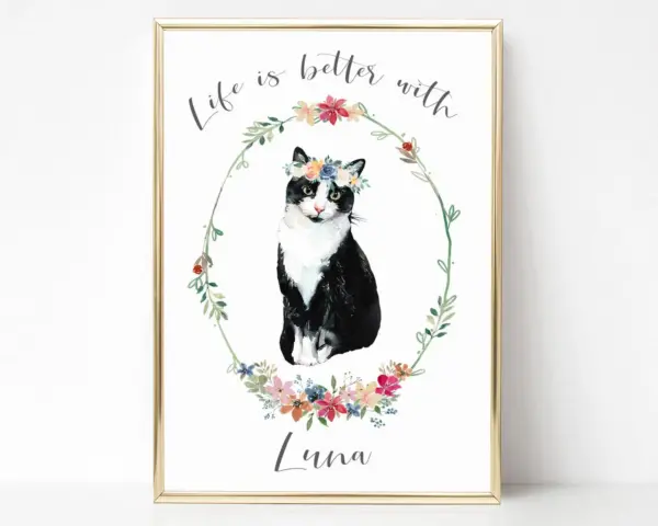 Black And White Cat Print Cat Poster Cat Gift Personalized Cat Lover Gift Cat Art Print Cat Wall Art Cat Portrait Personalised Unframed