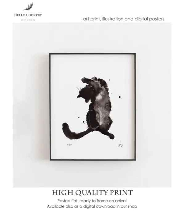 Black Cat Abstract Print Watercolour Signed Wall Art Japanese Cat Cat Gift Cat Home Decor Monochrome Minimalist Modern House
