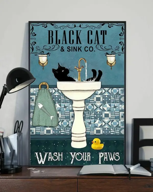 Black Cat And Sink Co Wash Your Paws Cat Lover Home Wall Decor Poster No Frame Hot Trend Poster Cat Love To Gift