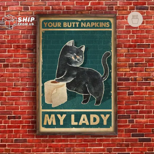 Black Cat Toilet Paper Poster - Funny Bathroom Decor