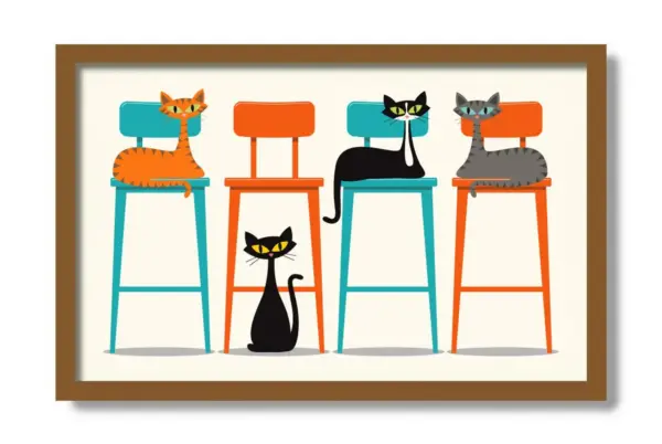 Black Cat Art Mid Century Modern Art Black Cat Lover Gift Grey Cat Art Tuxedo Cat Tabby Cat Orange Tiger Cat Kitchen Art Print