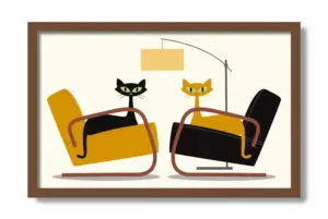 Black Cat Art Mid Century Modern Home Wall Art Cat Lover Gift Wall Decor Print Design Scandinavian Design Retro Poster Striped Cat