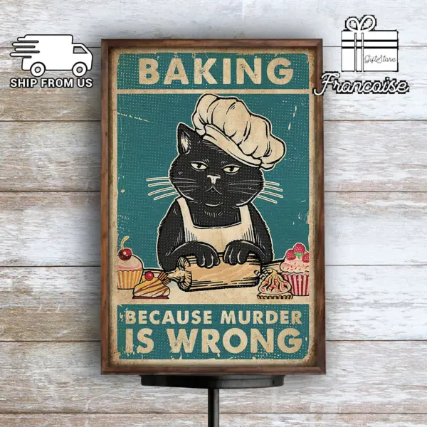 Black Cat Baker Baking Because Murder Is Wrong Funny Poster Wall Art Print Home Living Kitchen Decor Poster