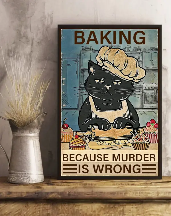 Black Cat Baking Because Murder Is Wrong Poster Baking Poster Cat Lover Gift Vintage Cat Baking Poster Gift For Bakers Bakery Poster