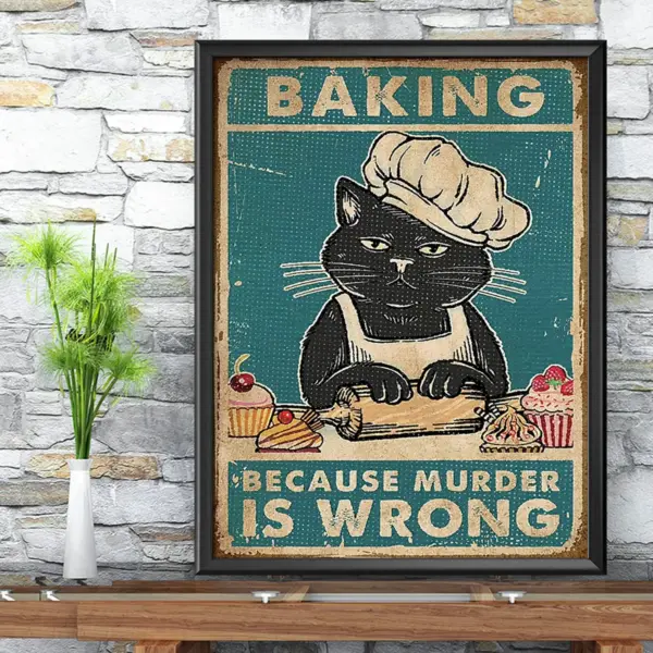 Black Cat Baking Because Murder Is Wrong Poster Black Cat Poster Cat Vintage Poster Cat Lover Gift